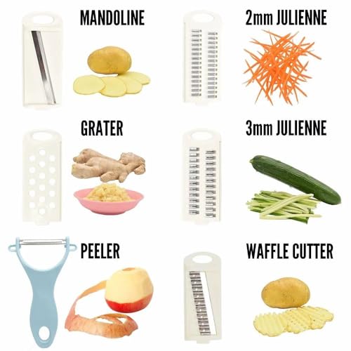 AREXOL - قطاعة ومبشرة خضراوات متعددة الوظائف، مزودة بخمس شفرات حادة من الفولاذ المقاوم للصدأ، لتقطيع الخضراوات الطازجة بسهولة وبشكل متساوي في المنزل