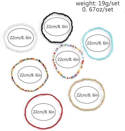 Generic - خلاخيل متعددة الطبقات للنساء الفتيات خرز يدوي بوهو 7 قطع - مجموعة اساور الكاحل الملونة مع سلسلة مجوهرات استك للقدم واليد زجاج