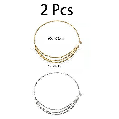 BydwdyB - طقم سلسلة مجوهرات بطن مكونة من قطعتين من للنساء بتصميم مثير وقابلة للتعديل بلون ذهبي, بدون نوع جوهرة