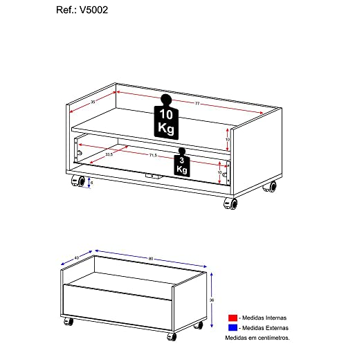 Multimóveis - ملتي موفسي خزانة حمام بيضاء مع عجلات V5002