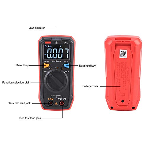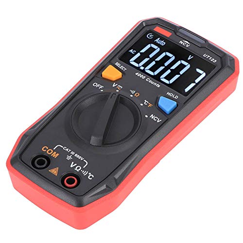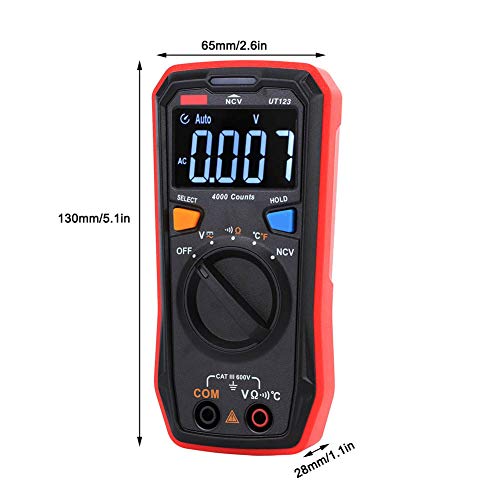 Fafeicy - مقياس متعدد بشاشة ملونة UT123 رقمي متعدد التردد تيار متردد/تيار مستمر، مقياس اختبار ان في سي، مع وظيفة قياس درجة الحرارة