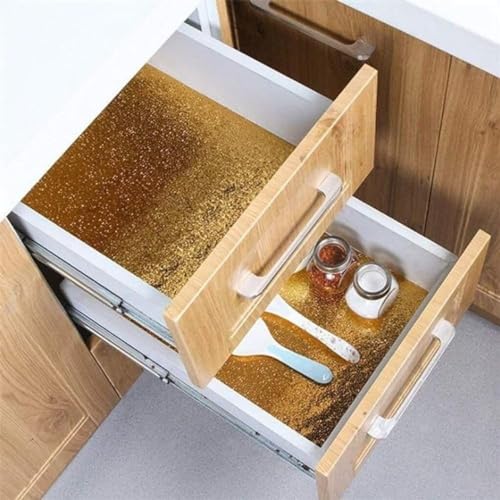 Generic - لفة مفارش 45 سم × 2 متر متعددة الأغراض ومضادة للانزلاق للحمام ودولاب المطبخ والرفوف والأدراج والثلاجة والطاولة (لفة مقاس 45 سم × 5 متر، لون ذهبي شفاف) (متعددة الأشكال)