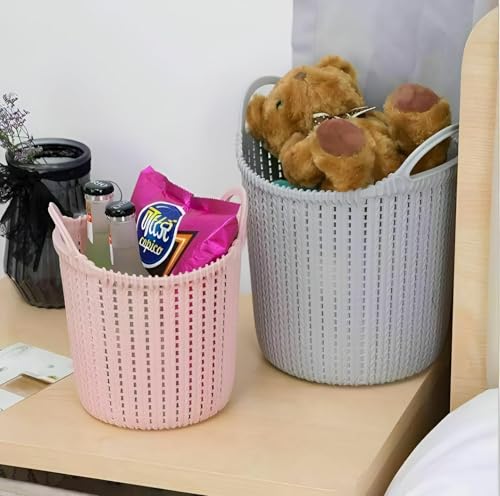 Generic - سلة متعددة الأغراض تعزز التنظيم المنزلي باستخدام هذه السلة المستديرة في المطبخ أو الحمام أو على تسريحة الشعر لسهولة الوصول إلى العناصر الأساسية، مما يجعل مساحة جذابة بصريًا