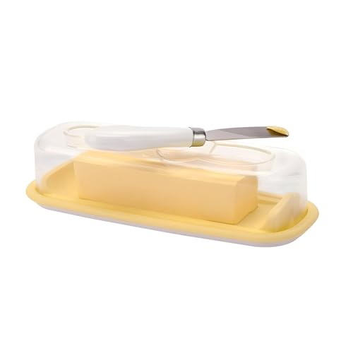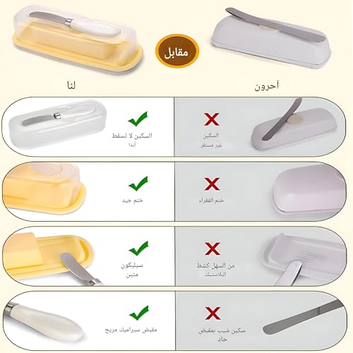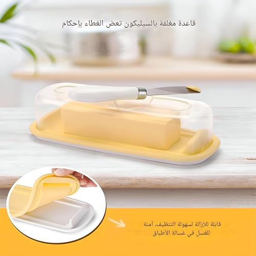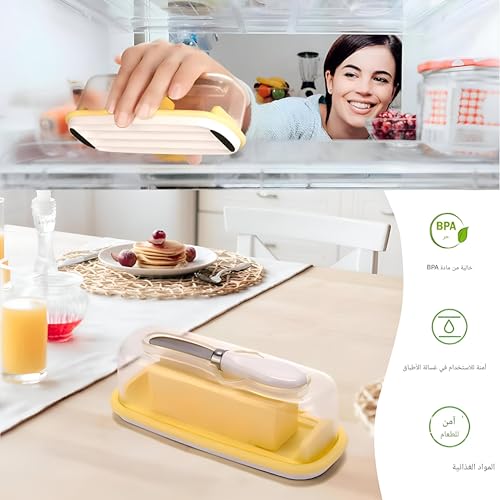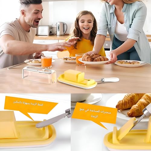 Generic - طبق زبدة متعدد الأغراض - مصمم للزبدة الشرقية والغربية، يضمن هذا الوعاء المحكم الغلق النضارة وسهولة الوصول للاستخدام اليومي متضمن سكينه فرد استالس بيد بورسلين