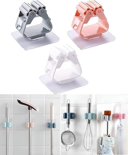 Generic - مشبك متعدد الأغراض - حل تخزين ممسحة مثبت على الحائط متعدد الاستخدامات ، تركيب بدون حفر لسهولة الاستخدام ، مثالي لتنظيم مستلزمات التنظيف ، تصميم مقاوم للماء (3 قطعة)