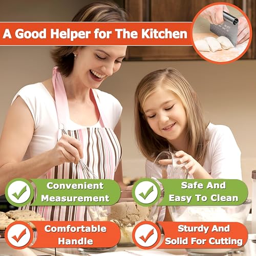 - واحدة من السمات البارزة لمكشطة العجين هذه هي مقياس القياس المدمج فيها، والذي يسمح بقياسات سريعة ودقيقة. هذا مفيد بشكل خاص عندما تحتاج إلى تقطيع العجين أو البيتزا إلى أجزاء متساوية، مما يجعل عملية الخبز أكثر ملاءمة ودقة. سواء كنت تعد مجموعة كبيرة من ملفات تعريف الارتباط أو بيتزا واحدة، تساعد هذه الأداة على ضمان اتساق الأجزاء الخاصة بك، مما يؤدي إلى نتائج أفضل في مساعي الخبز الخاصة بك.