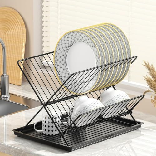 generic - رف اطباق متعدد الاغراض مع مصفاة اطباق معدنية قابلة للطي - مصفاة اطباق سهلة التنظيف ومنظم مقاوم للبقع والروائح - تخزين موفر للمساحة لسطح المطبخ للمنزل
