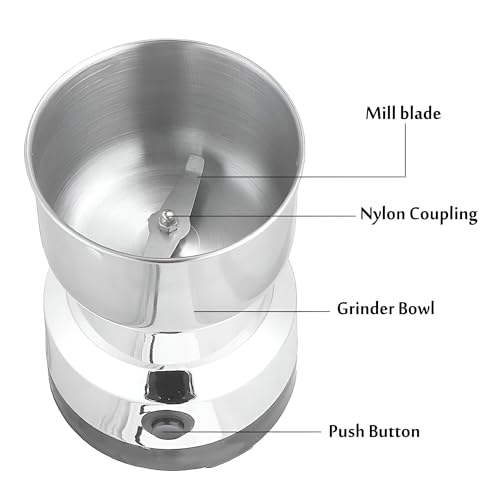 - تتميز مطحنة القهوة الكهربائية متعددة الاستخدامات هذه بتصميم أنيق ومصنوعة من الفولاذ المقاوم للصدأ مما يتيح طحن حبوب القهوة والعديد من المكونات الأخرى أيضًا مثل المكسرات والتوابل والأعشاب وغيرها. مصنوعة من مواد عالية الجودة ومتينة وجميلة لتناسب أي مطبخ.