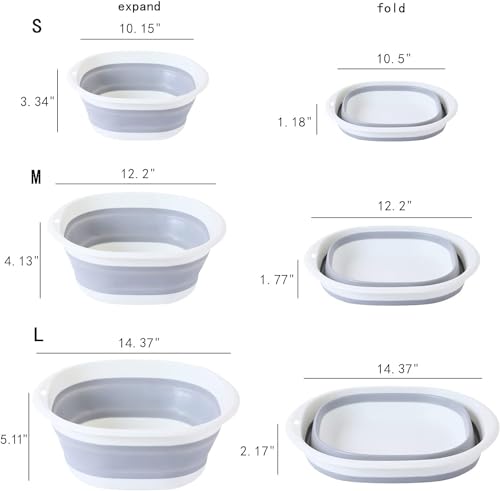 Sagreeny - حوض غسيل متعدد الاغراض وقابل للطي وخفيف الوزن، حوض قابل للطي لحوض التخييم واحواض ار في (مجموعة من 3 قطع، S، M، L)
