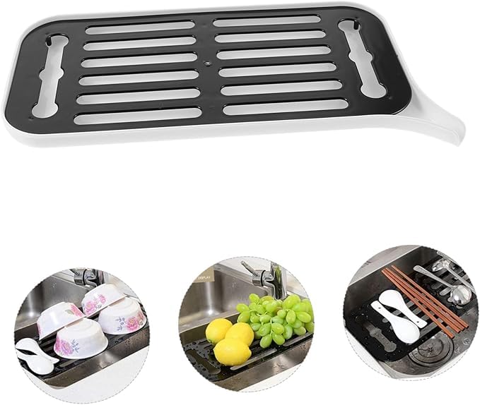 Generic - صينية تصريف بلاستيكية متعددة الاغراض، تجفيف الشاي، تنقيط، حامل اكواب ادوات مائدة بلاستيكية.، أسود وأبيض