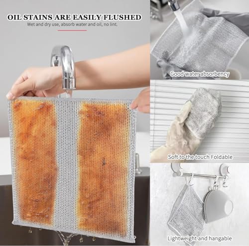 Spaceshoop - فوطة غسيل الأطباق متعددة الأغراض وقابلة لإعادة الاستخدام لتنظيف المطبخ، فوطة تنظيف سلكية مضادة للخدش (عبوة من 6 قطع)
