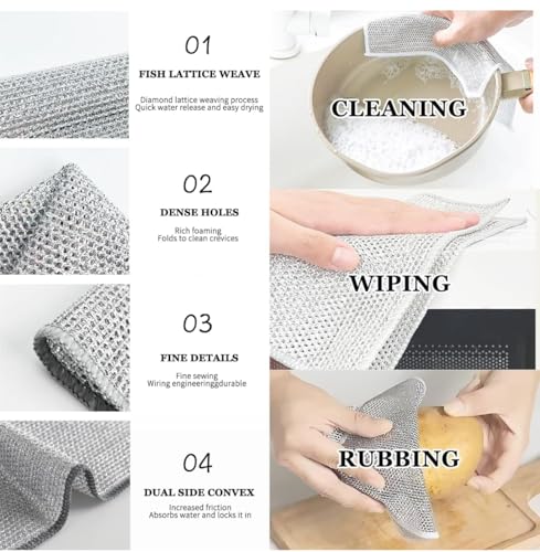 - استخدامات متعددة: تعتبر فوط غسيل الأطباق السلكية المتينة والقابلة لإعادة الاستخدام مثالية لتنظيف أدوات المطبخ والسيارات والإلكترونيات والزجاج والمجوهرات والفولاذ المقاوم للصدأ والأجهزة المنزلية والأثاث وأكثر من ذلك. تتميز بأداء استثنائي مما يجعلها إضافة لا غنى عنها للمطبخ والتنظيف المنزلي.