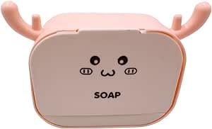 - صندوق صابون بتصميم قرن الوعل مع غطاء قلاب بخطاف مقاوم للماء،