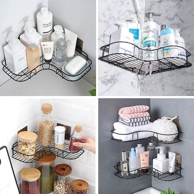 - يستخدم على نطاق واسع: يعد رف منظم دش الزاوية الخاص بنا مثاليًا للاستخدام في الحمام والمطبخ. سعة كبيرة: يمكنها حفظ الصابون والشامبو ومنظف الوجه واللوشن والفرش وما إلى ذلك. كما أنه مناسب أيضًا لبرطمانات التوابل والعلب والزجاجات وغيرها، ويمكنك تعليق الفوطة وكرة الاستحمام وغيرها باستخدام الخطافات الأربعة المجانية، مما يوفر الكثير من المساحة.