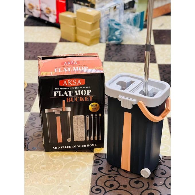 Generic - دلو ممسحة مسطح للغاية متعدد الاغراض مع راس من المايكروفايبر ومقبض قابل للطي قابل للتمدد 60-126 سم لتنظيف الارضيات بدون مجهود مع نظام تنقية المياه