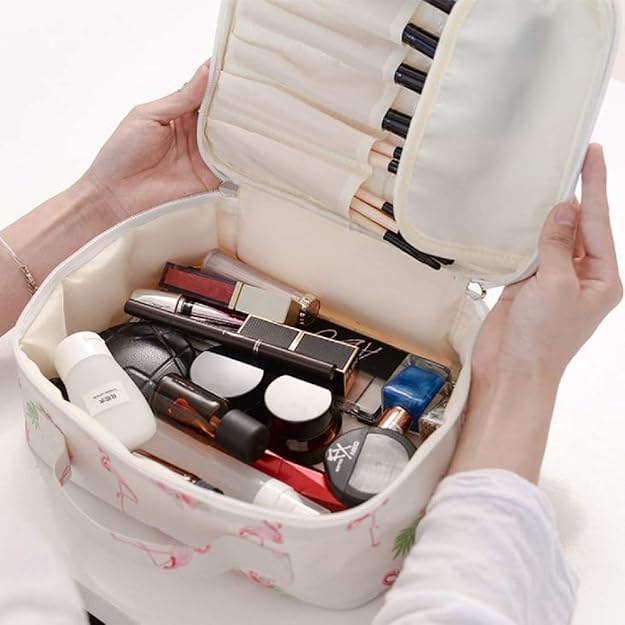 Generic - شنطة مكياج متعددة الاغراض مقاومة للماء مع شنطة حامل فرشاة، شنطة سفر كبيرة لادوات الزينة للنساء، شنطة تخزين مستحضرات تجميل متينة 30 × 20 سم (عبوة واحدة)