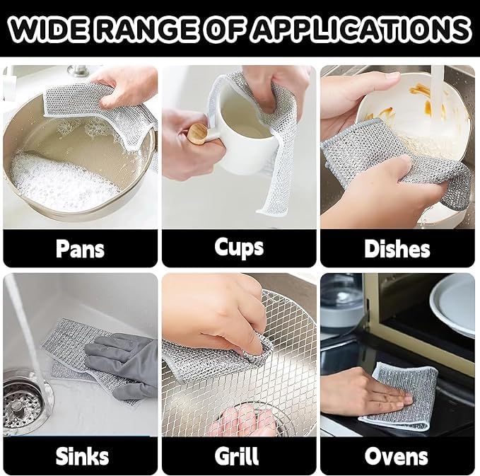 - قطعة قماش غسيل الأطباق السلكية متعددة الأغراض متينة وقابلة لإعادة الاستخدام ويمكن استخدامها لمسح أدوات المطبخ والسيارات والإلكترونيات والنظارات والمجوهرات والستانلس ستيل والأجهزة المنزلية والأثاث وما إلى ذلك. أداءها الفعال سيجعلها بالضبط ما يحتاجه مطبخك.