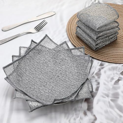 Generic - اقمشة غسيل الاطباق سلكية متعددة الاغراض تزيل الصدأ والبقع الزيتية والأوساخ العنيدة دون الاضرار بأواني الطبخ او يديك. (6 قطع)، ستانلس ستيل