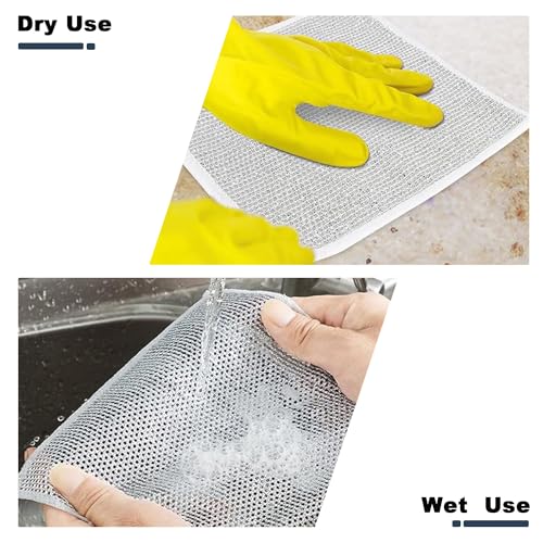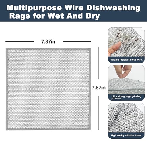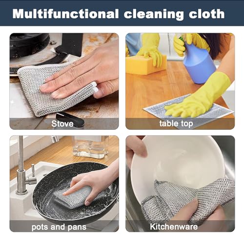 ahishfoneya - قطعة قماش سلكية متعددة الاغراض لغسيل الاطباق مصنوعة من اسلاك معدنية لتنظيف الاطباق والاطباق الرطبة والجافة، قماش غير قابل للخدش للاطباق والمغاسل (5)