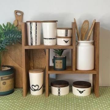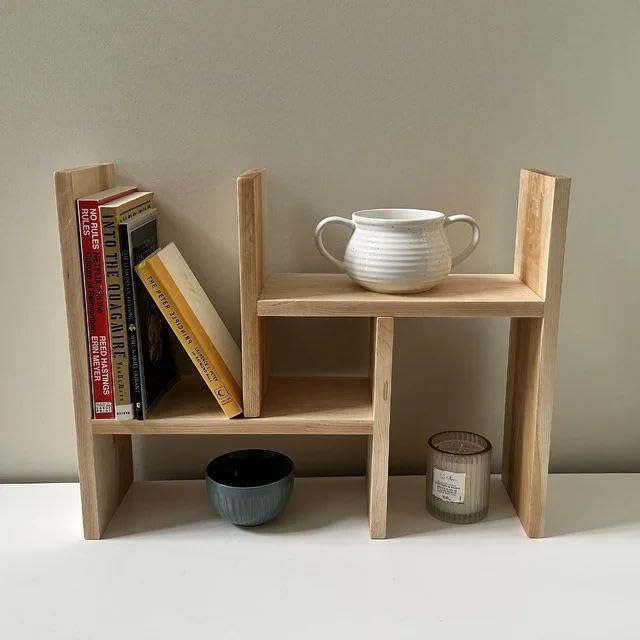 Generic - رف توابل متعدد الاستخدامات - منظم خشبي انيق على شكل حرف H، ارتفاع 42 سم وعمق 11 سم، مثالي لطاولات المطبخ او مستلزمات الحمام او التخزين المكتبي مع نسيج طبيعي مزخرف
