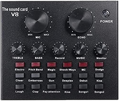 YU WELL - مولوجيتا، V8 واجهة صوت حية متعددة الوظائف مع وصلة صوت يو إس بي ذكية مستوى الصوت قابل للتعديل بطاقة صوت لتسجيل خطاب الاستضافة