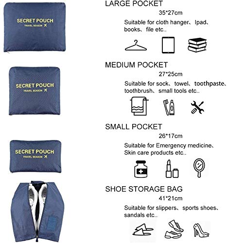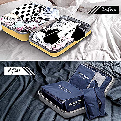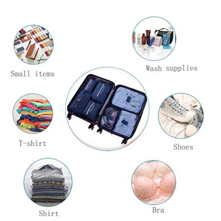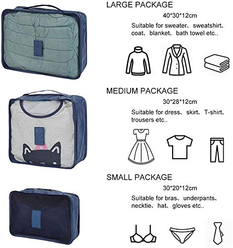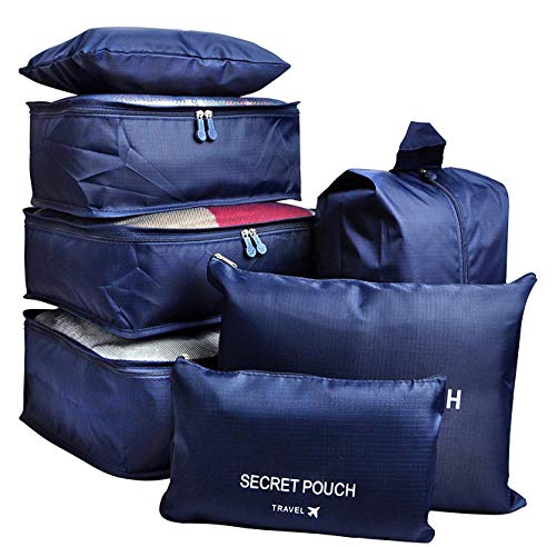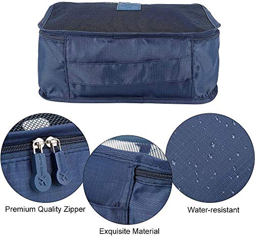 MULUP_UK - مجموعة مكعبات تعبئة للسفر من مولوب_يو كيه، 7 قطع حقائب تنظيم الامتعة، اكياس مضغوطة لاكياس تخزين الملابس، ازرق كحلي، البوليستر، من مولوب_المملكة المتحدة