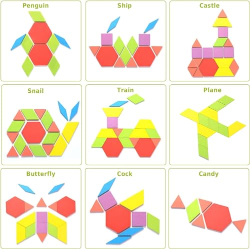 - قيمة رائعة: تتضمن المكعبات الخشبية 155 قطعة ذات شكل هندسي و24 بطاقة تصميم وشنطة تخزين واحدة. مكعبات بأشكال مختلفة لصنع العديد من الأنماط المختلفة. من البسيط إلى المعقد، يمكن أن تخلق أشكالًا مختلفة من الحيوانات والحشرات والطيور وما إلى ذلك.