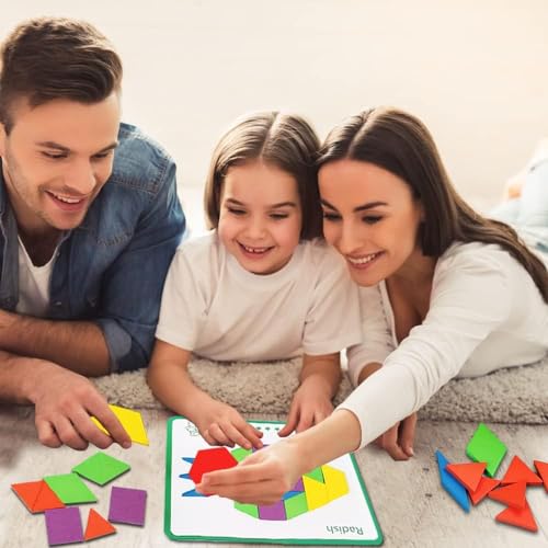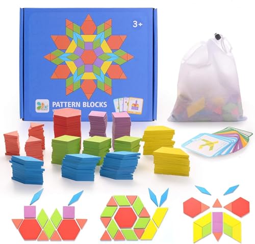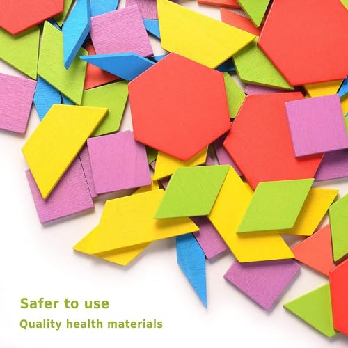 مكعبات خشبية بنمط هندسي، ألعاب مونتيسوري تانجرام التعليمية الكلاسيكية مع 24 قطعة من بطاقات التصميم للأطفال الصغار، 155 قطعة من مامو بير