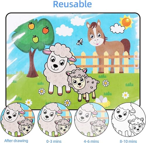 - 🎨【قابل لإعادة الاستخدام ويوفر تنظيف بدون فوضى】سيختفي الرسم بشكل طبيعي بعد 3 إلى 10 دقائق، ثم يمكن للأطفال الرسم في كتاب التلوين هذا الخالي من الفوضى مرة أخرى. يوفر بديل رائع لورق الرسم التقليدي، وليس منتجًا يستخدم مرة واحدة.