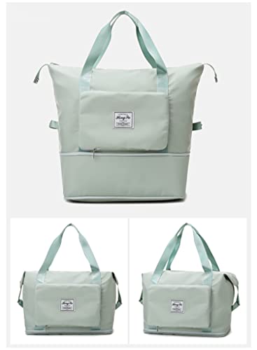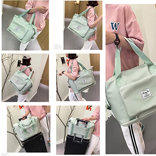 MUOSFY - شنط سفر للنساء خفيفة الوزن وقابلة للتوسيع للحمل في عطلة نهاية الاسبوع مع شنطة رياضية بجيب للاشياء المبللة للجيم دفل للسفر بالطيران اخضر فاتح البوليستر من موسفاي
