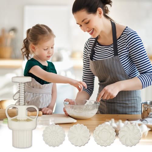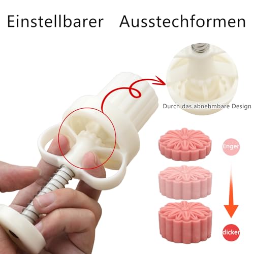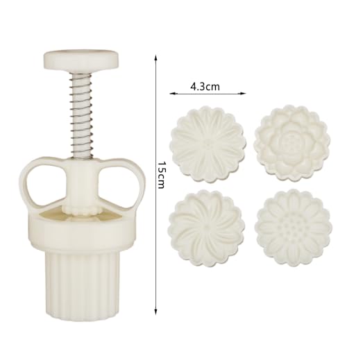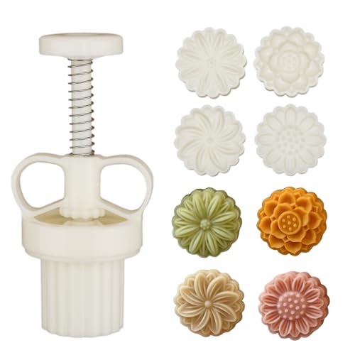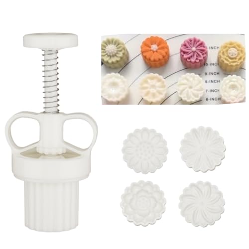 MUOZLOP - مجموعة قوالب صينية لكعكة القمر، قالب كيك على شكل قمر مع 4 قطاعات بسكويت مع قوالب ضغط قابلة للتعديل (A1)