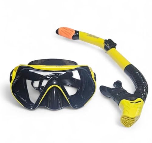 Generic - مجموعة غوص احترافية بقناع غوص مضاد للضباب مع عدسة من الزجاج المقوى من موراينا، أنبوب تنفس بجزء علوي جاف، للسباحة والغوص
