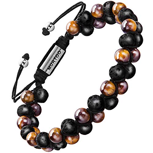 murtoo - سوار خرز كريستال 7 شاكرا من احجار طبيعية وكريستال مزدوج الطبقات لليوجا والشفاء والتامل والاسترخاء والتخلص القلق للرجال والنساء حجر لافا