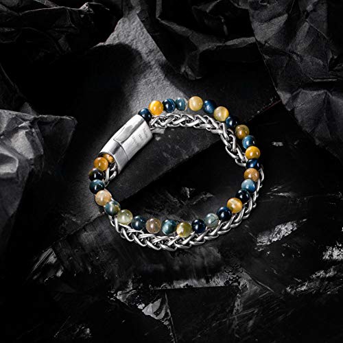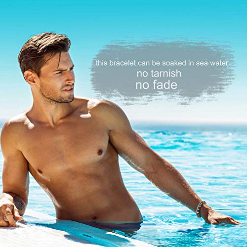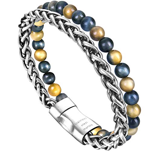 murtoo - سوار من الجلد والخرز الطبيعي من مورتو، سوار من الستيل والجلد، يُقدم كهدية في المناسبات العامة, 8 inches, جلد