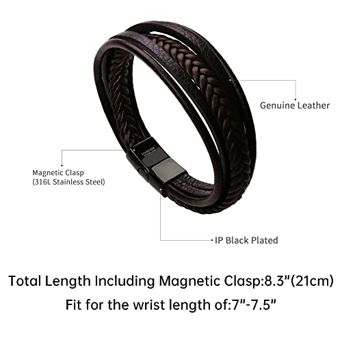 murtoo - سوار جلد للرجال من موريتو مميز متعدد الطبقات مضفر بقفل مغناطيسي 7.5inch