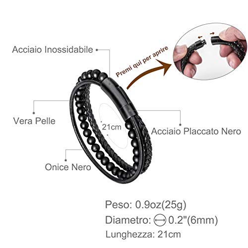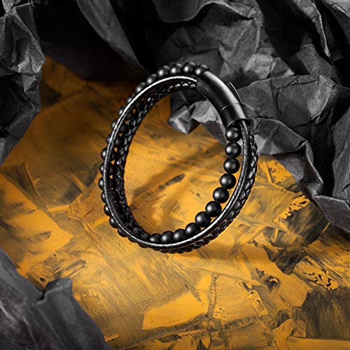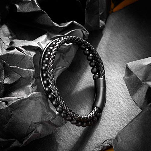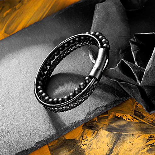 murtoo - سوار جلد طبيعي وحجر مع مشبك مغناطيسي ستانلس ستيل وصندوق هدايا للرجال من مورتو, جلد