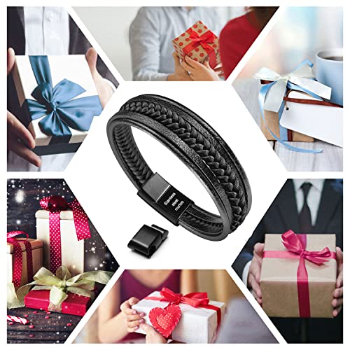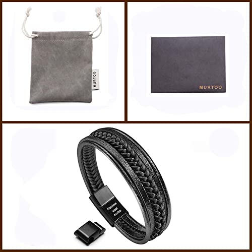 murtoo - سوار من جلد البقر الطبيعي موتو للجنسين للرجال والنساء معصم متعدد الطبقات بلون اسود وبني مشبك مغناطيسي 8.8 inches