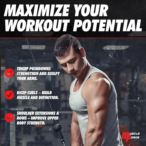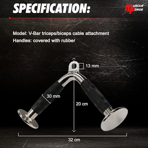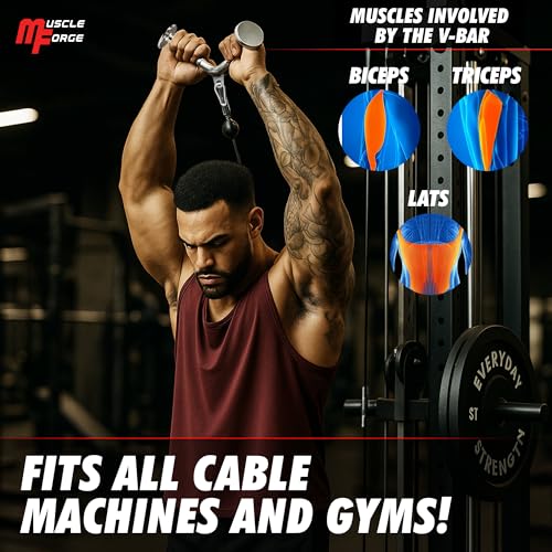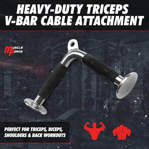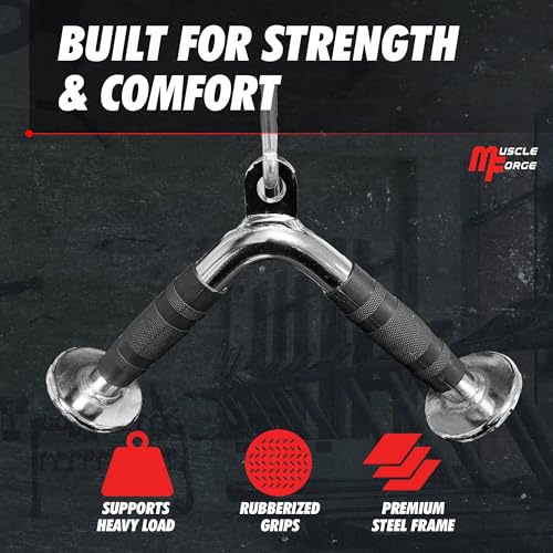 MuscleForge - ملحق ثلاثي الرؤوس من ماسل فورج® مقبض على شكل حرف V لسحب الكابلات ألة قضيب ثلاثية كابل لكمال الأجسام والذراعين واللياقة البدنية مطاط متعدد الألوان
