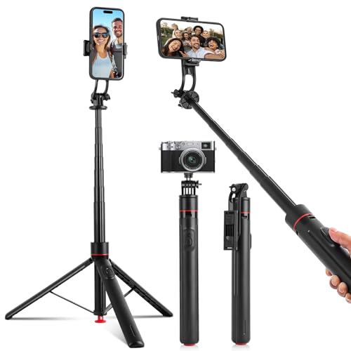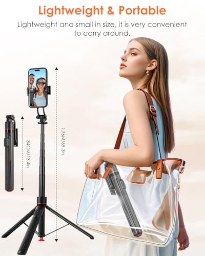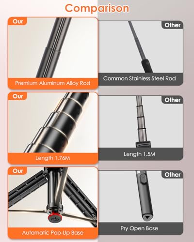 Musclez - عصا سيلفي ثلاثية القوائم مع عصا سيلفي قابلة للارتداد، وحامل هاتف قابل للفصل، وجهاز تحكم عن بُعد بالبلوتوث، وحامل ثلاثي محمول مناسب للسفر والتصوير اليومي والبث المباشر من ماسليز، طول 176 سم
