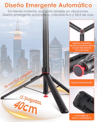- ⚡ فتح اوتوماتيكي وتمديد سريع: تتميز قاعدة عصا السيلفي بزر فتح تلقائي. ضعه على بعد حوالي 20-30 سم من الأرض وستفتح القاعدة اوتوماتيكيًا؛ ويمتد العمود التلسكوبي القابل للسحب بسلاسة إلى الارتفاع المطلوب خلال ثوانٍ. عند طيها، تصبح صغيرة الحجم وسهلة الحمل في الشنطة أو الجيب. مثالية للسفر والأنشطة الخارجية والمغامرات.
