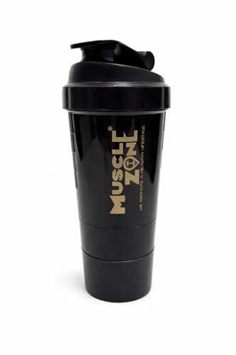 Generic - شيكر بروتين ذكي من ماسل زون سعة 500 مل مع اكواب تخزين مزدوجة، خالي من البيسفينول ايه، اسود