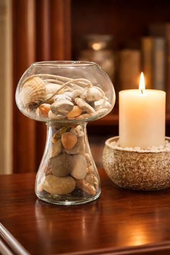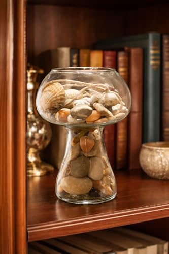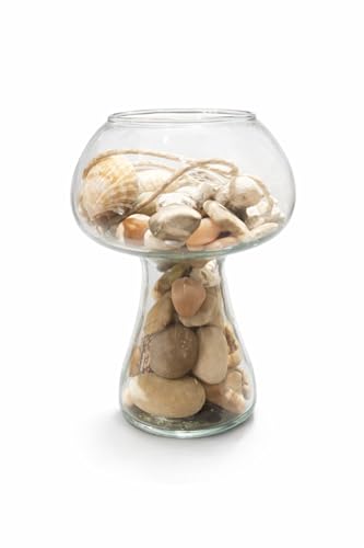 Generic - مزهرية زجاجية بتصميم فطر مع أصداف البحر الأحمر، ديكور منزلي بطابع ساحلي