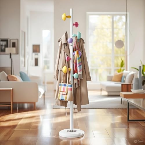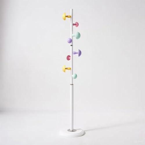 Generic - حامل معاطف قائم للأطفال بتصميم خطافات على شكل مشروم، معدني مع قاعدة راتنج، أبيض بخطافات ملونة، ارتفاع 167 سم، قاعدة 30 سم