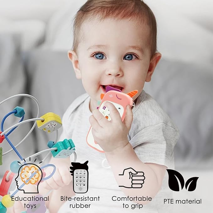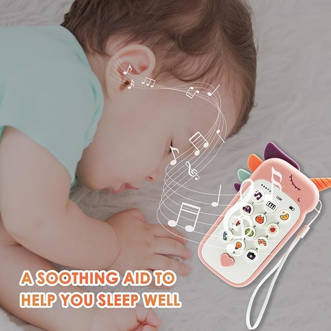 KIDSZONE - لعبة موبايل موسيقية للأطفال - لعبة موبايل مضيئة مع أزرار وموسيقى | لعبة تعليمية حسية مع حزام للأطفال الصغار والرضع (للأعمار من 6 الى 36 شهر)
