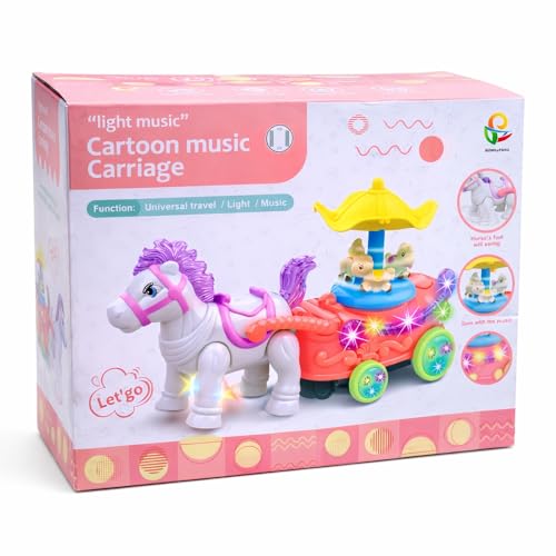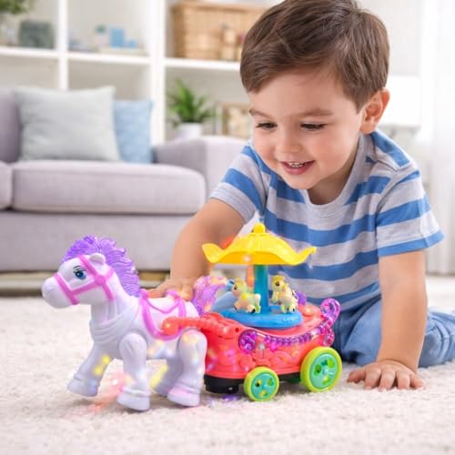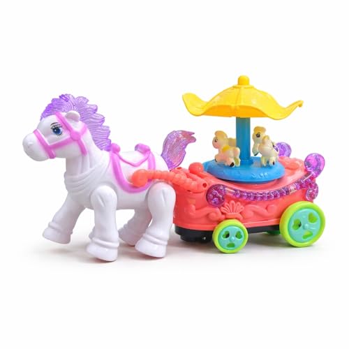 Generic - لعبة عربة حصان موسيقية مع دوار وأضواء وامضة وموسيقى مصنوعة من البلاستيك الملون، مقاس 22 × 16.5 × 10.5 سم، لعمر 3 سنوات فما فوق