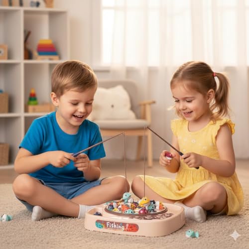 Generic - "لعبة صيد السمك الموسيقية الدوارة للأطفال - مجموعة ألعاب تعليمية مع سنارات وصيد مغناطيسي - هدية مثالية للأولاد والبنات