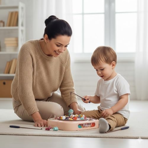 - محتويات شاملة: تتضمن اللعبة 27 قطعة ملونة من الأسماك الجذابة مع صنارتين للصيد وقاعدة دوارة موسيقية تفاعلية لتجربة لعب ممتعة ومشوقة