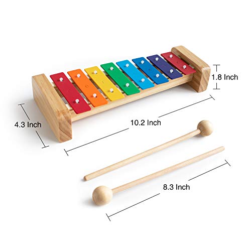 - ألعاب تعليمية: تأتي مجموعة الإيقاع مع 1 إكسيليفون، 2 مطرقة خشبية و2 بطاقة موسيقية. مع الطريقة المصاحبة، يمكن لطفلك البدء في اللعب على الفور. لا حاجة إلى معرفة سابقة! إنه رائع لتحسين التنسيق بين اليد والعين والمهارات الحركية الإجمالية الأخرى.