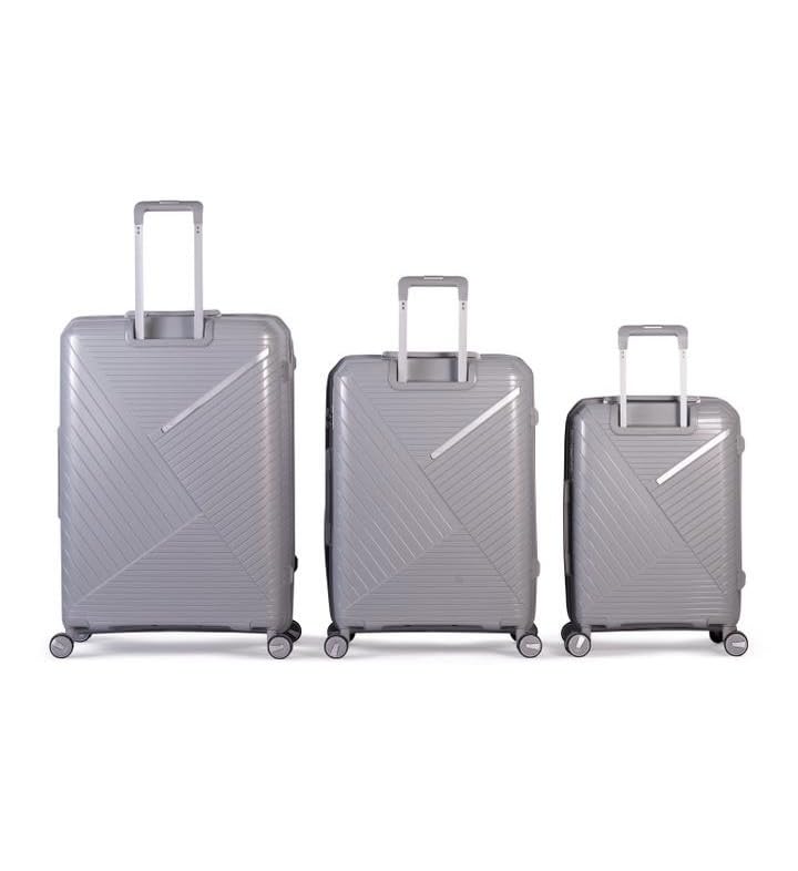 Musselz - طقم حقائب سفر من ماسلز، 3 قطع، لون فضي، مصنوع من البولي بروبيلين، مزود بعجلات سبينر وقفل كومبينيشن