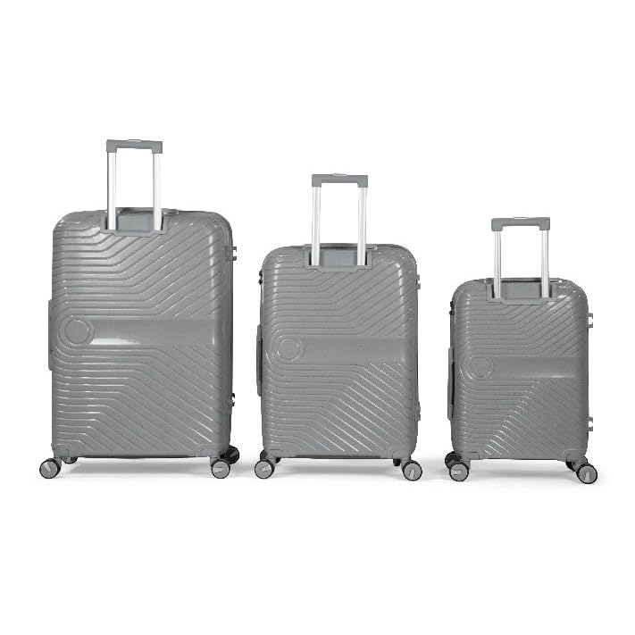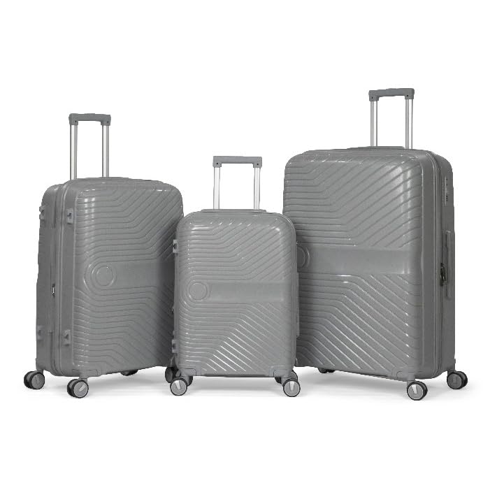 Musselz - مجموعة شنط سفر كوملبيت من 3 قطع ميسلز تاج مصنوعة البولي بروبيلين غير قابلة للكسر فضي بلح البحر